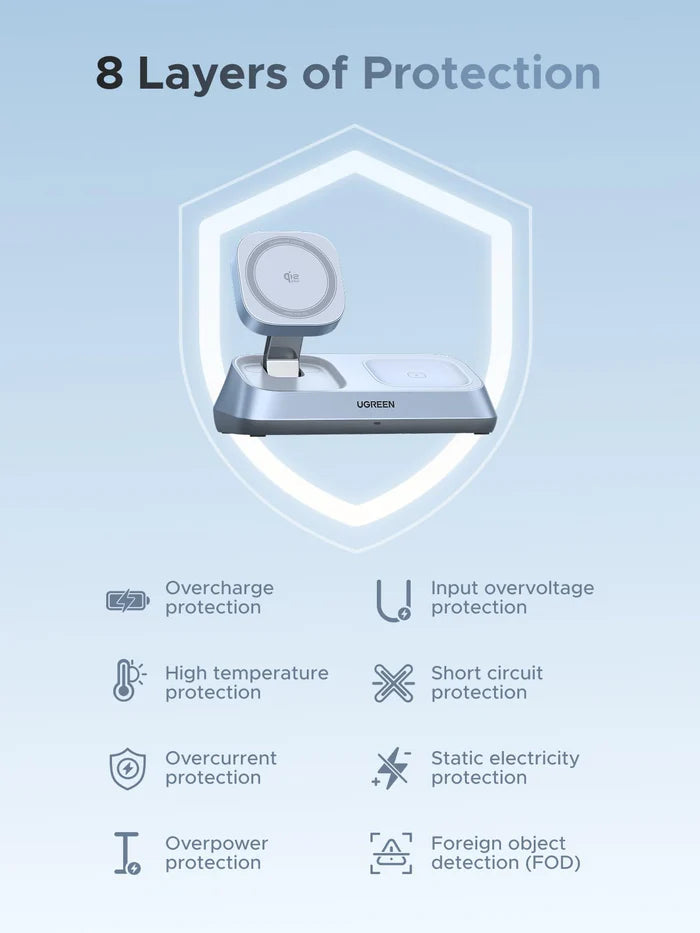 UGREEN MagFlow 3-in-1 Magnetic Wireless Charger (Qi2 25W, MagSafe-Compatible)