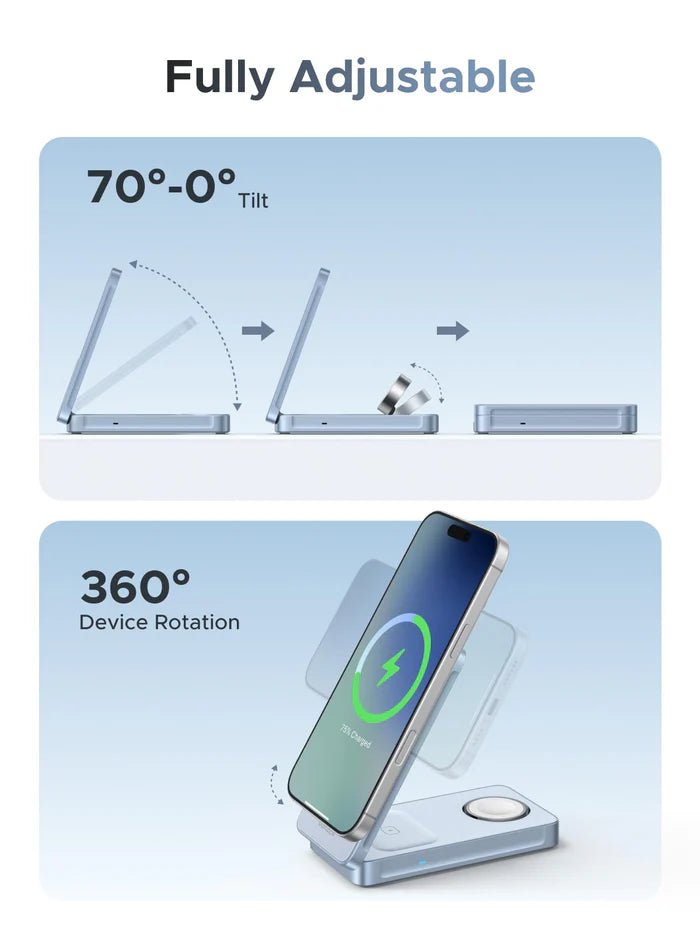 All-in-One Charging: Wirelessly charge iPhone, AirPods, and Apple Watch at the same time.