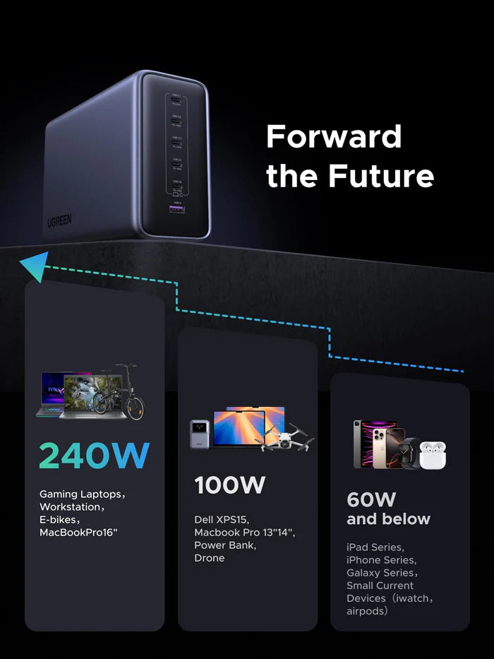 Ultra-High 500W Output: Delivers up to 240W on a single port and 500W total, ideal for gaming laptops and power-hungry devices.