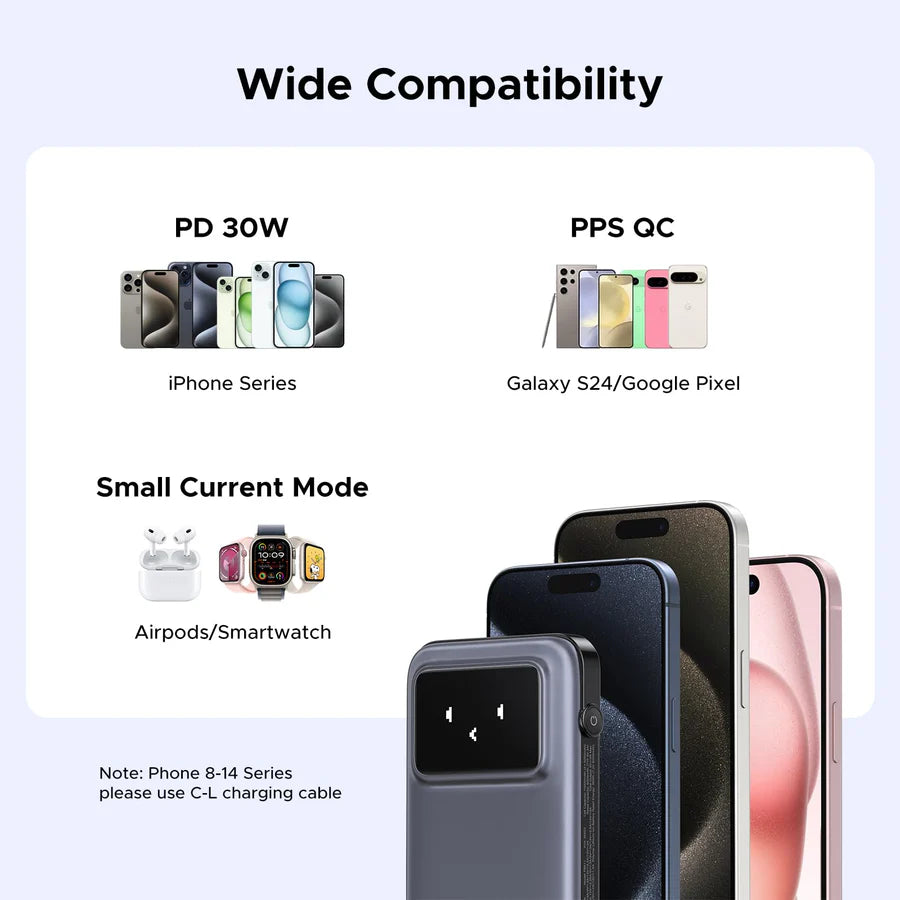One-Stop Charging Solution: Built in a USB C Cable, UGREEN Uno power bank effectively avoids the trouble of carrying extra cable or cable mess, just pick it up and get power.
